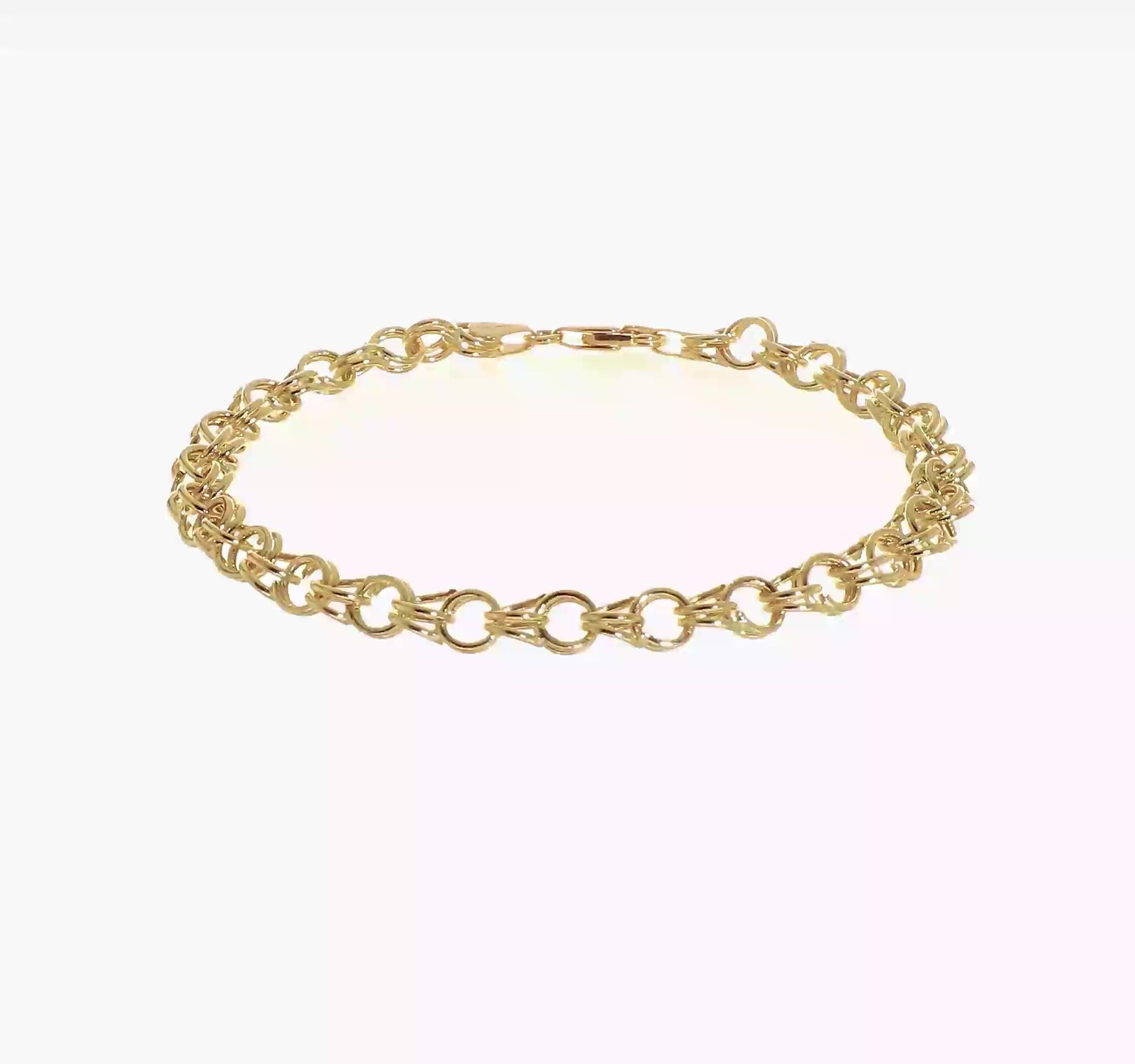 10K Solid Yellow Gold Double Link Charm Bracelet 4mm wide Lobster Claw