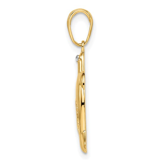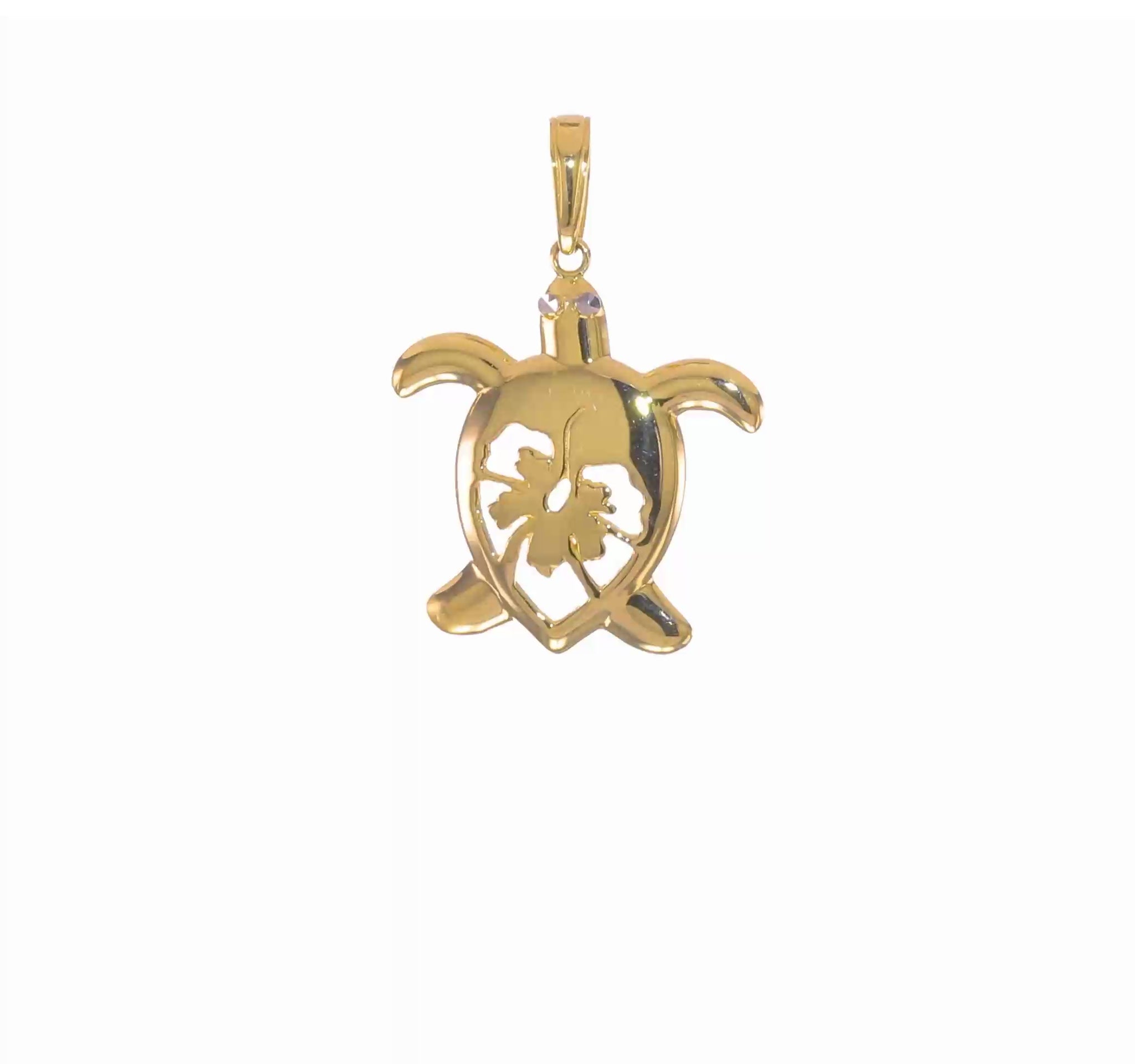 14k Gold and White Rhodium Diamond-cut Floral Turtle Pendant
