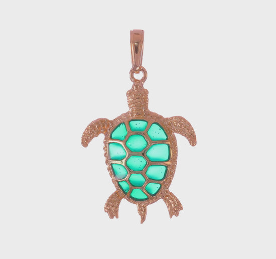 14K Gold Green Enameled Sea Turtle Pendant