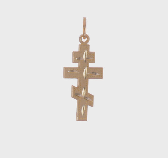 14k Satin and Textured Diamond-cut Eastern Orthodox Cross Charm