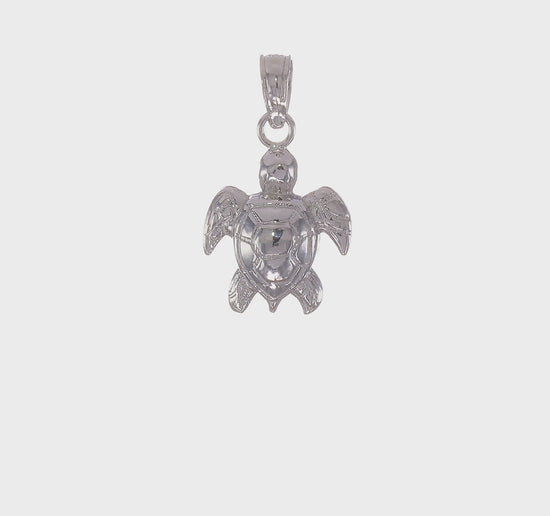 Crafted from 14K white gold with rhodium plating, this exquisite sea turtle charm captures oceanic elegance in miniature form. Measuring just 16mm in length, the polished pendant features intricate texturing that brings the beloved marine creature to life. The secure 5mm bail accommodates most chain styles, while its lightweight 0.87-gram construction ensures comfortable everyday wear. Expertly cast and finished to perfection, this charm celebrates both fine craftsmanship and nature's beauty—an ideal addition to any jewelry collection or meaningful gift for ocean enthusiasts.